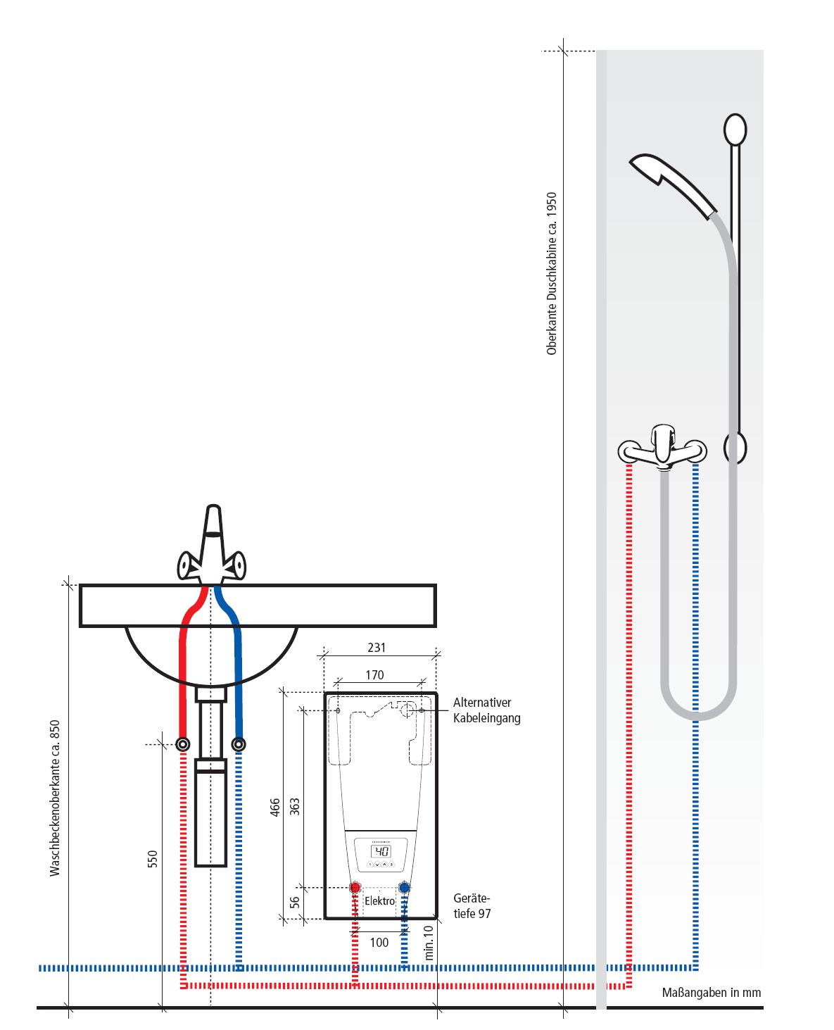 • Elektronisch geregelter Durchlauferhitzer zur komfortablen und sparsamen Warmwasserversorgung.