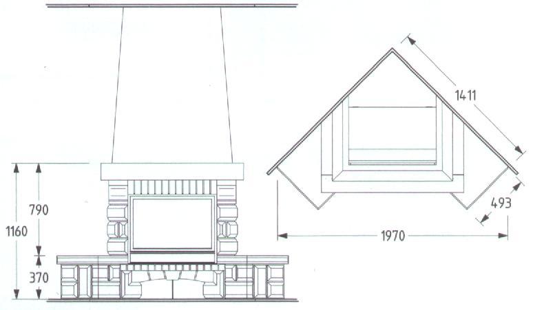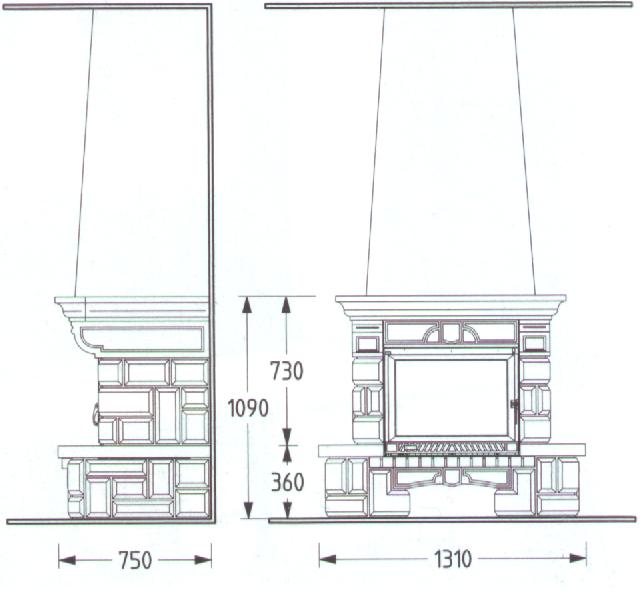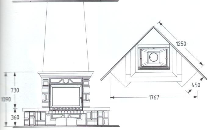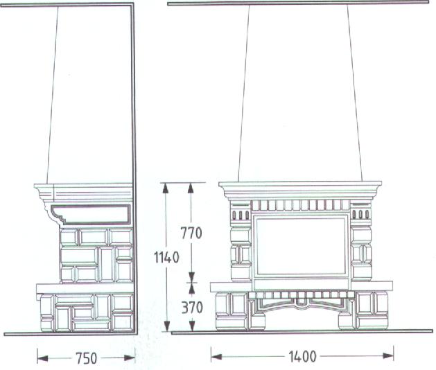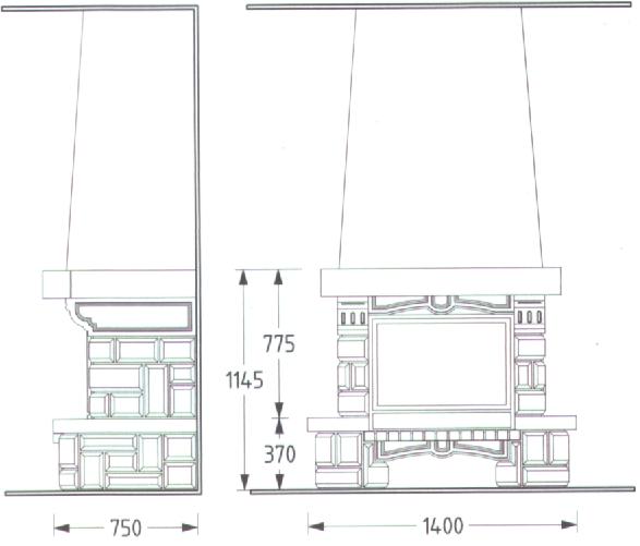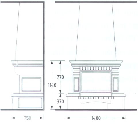 - Wandkamin mit Nische aus sandfarbenem Edelroc, Nische wahlweise rechts oder links aufstellbar