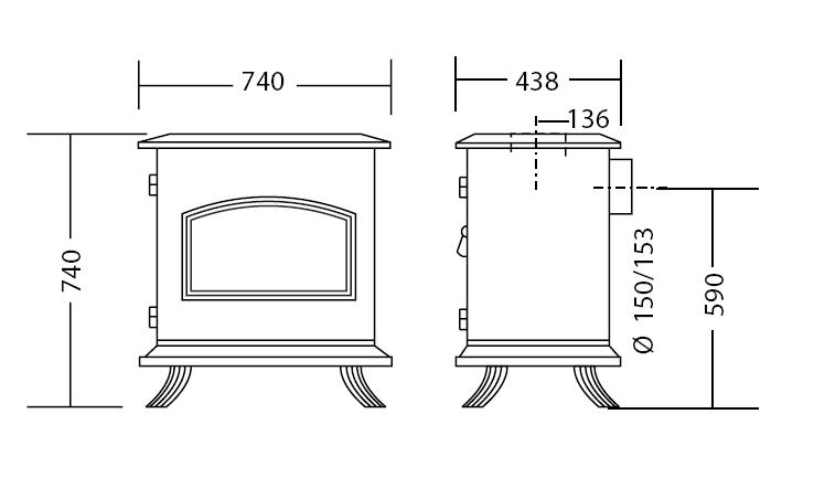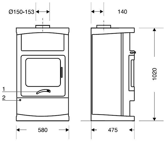 - Feuerraum mit Schamotte und massiven Gussdrehrost