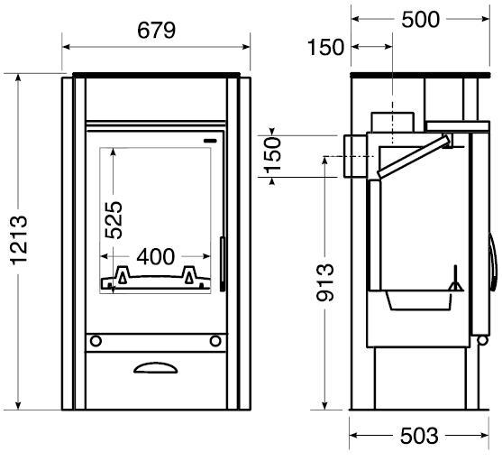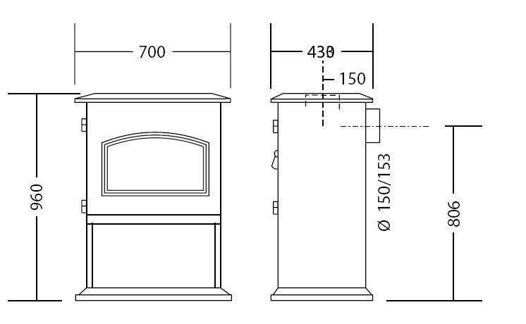 - Feuerraum mit 5 cm starken Schamottesteinen.