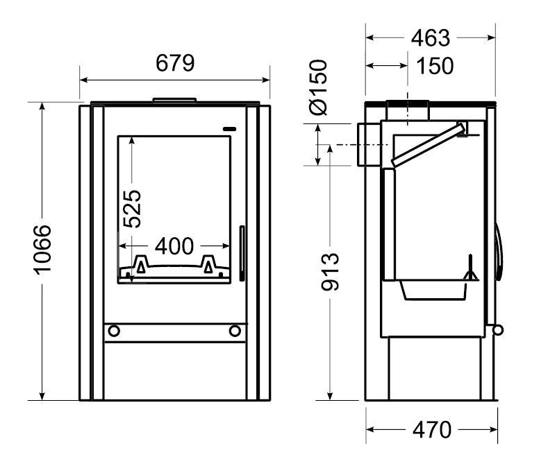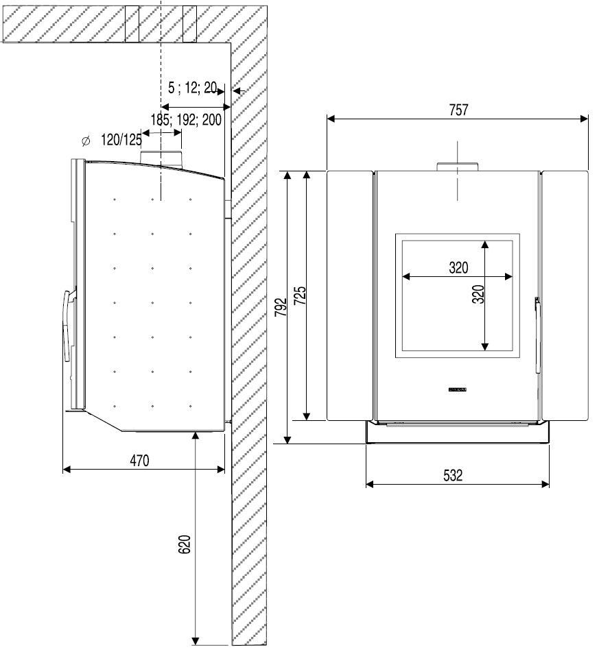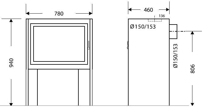 - Inox THR Reflektor mit Umlenkung Vermiculite. Primär- Sekundärluft regelbar.